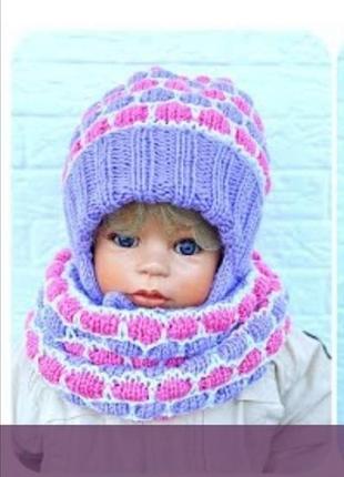 Шапочка на девочку весенне-осенняя ручной работы на возраст 2-3 года, обхват головы 47-50 см. Шапочка без подкладки. Пряжа Alise Baby Wool (40% шерсть, 40% акрил, 20 % бамбук).
