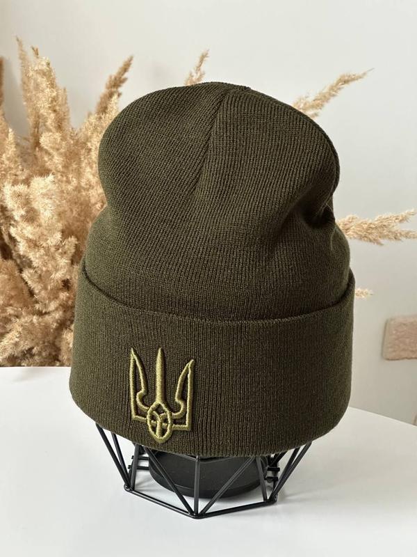 🇺🇦Шапка Патріотична 🇺🇦 ТРИЗУБ 🔱 Вишивка Стиль: Лопата (унісекс) Виробник: Україна🇺🇦 Розмір: oversize В’язка: подвійна з відворотом🍁❄️ Склад: Вовна 50%, акрил 50%