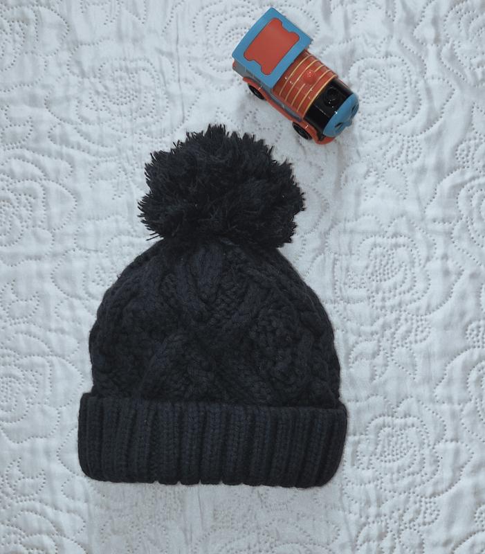 Чорна котонова шапка з помпоном, всередині товстий фліс, дуже тепла. 💯 Котон зовні.