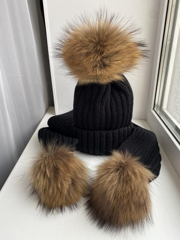 Набір шапка та шарф з натуральними помпонами