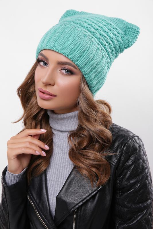 Шапка жіноча в'язана зимова тепла, на флісі, зелена