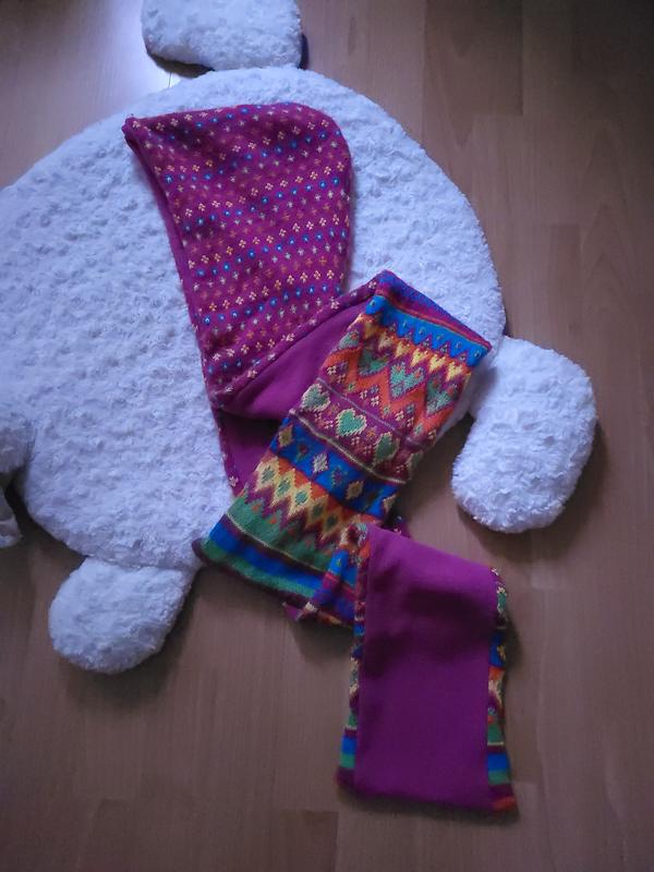 Оригінальна річ, дочка його дуже любила, яскравий ( , всередині повністю на флісовій підкладці. Носола десь біля 6-8 років, підійде для дорослих на ОГ до ≈ 52 см.