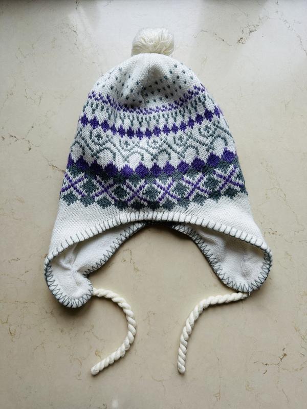 Вязаная шапка шапочка ушанка на девочку 8-10 лет, 134-140 см на флисовой подкладке🛍️ В идеальном состоянии🤍💜🤍