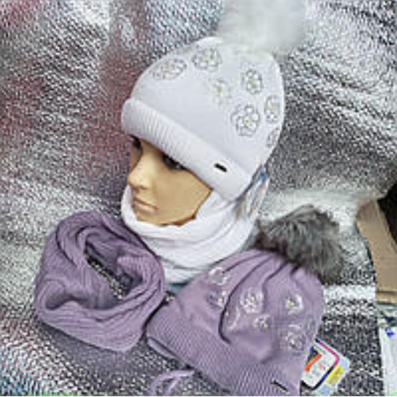 Шапка для дівчинки на флісовій основі на завʼязках с шарфіком баф