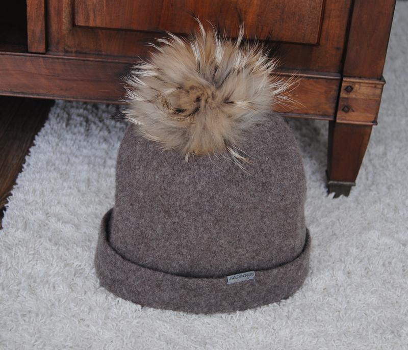 Шерстяна шапка Marc Cain Об'єм з відворотом - 53 см., без відвороту по низу - 58 см. Висота з відворотом - 22,5 см., без відвороту - 27 см. Помпон знімний, єнот. Стан відмінний,без дефектів.