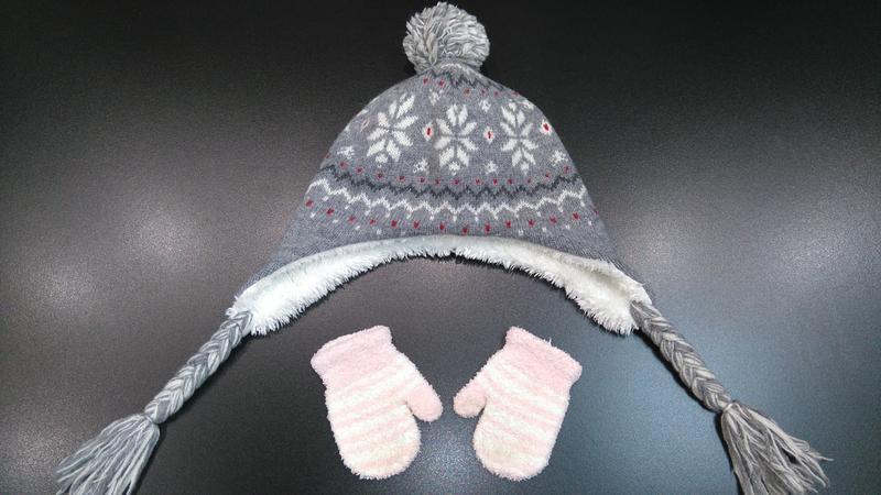 Шапка теплая двойная на девочку 3-5 лет + варежки в подарок