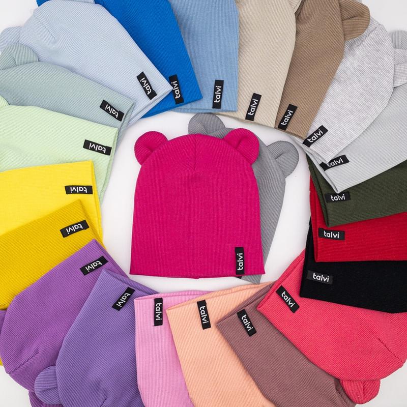Шапочка з подвійного трикотажу в рубчик з гарними вушками😺 Для дівчат та хлопчиків 🩷🩵 Склад: бавовна 97%, лайкра 3% На 1-2 рочки✨