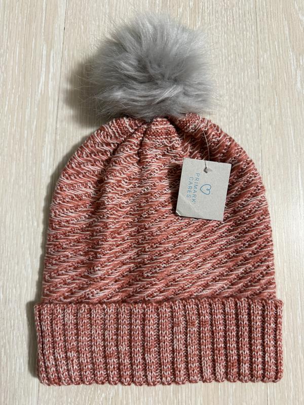 У наявності красива в'язана шапка фірми PRIMARK. Склад: 100% акрил... Нитка м'яка та приємна на дотик, добре тягнеться. Довжина без бубона — 24 см, довжина з бубоном — 30 см, ширина — 21 + см і ще добре тягнеться.