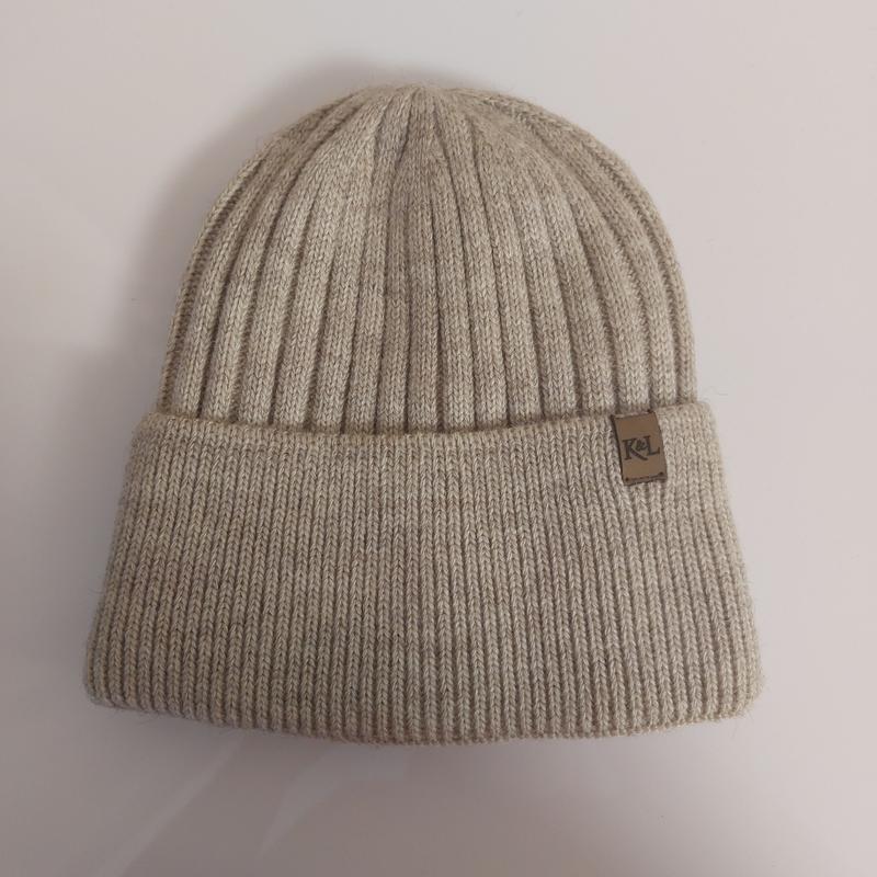 Шапка женская вязаная с отворотом на флисе. Размер универсальный. Цвет бежевый.