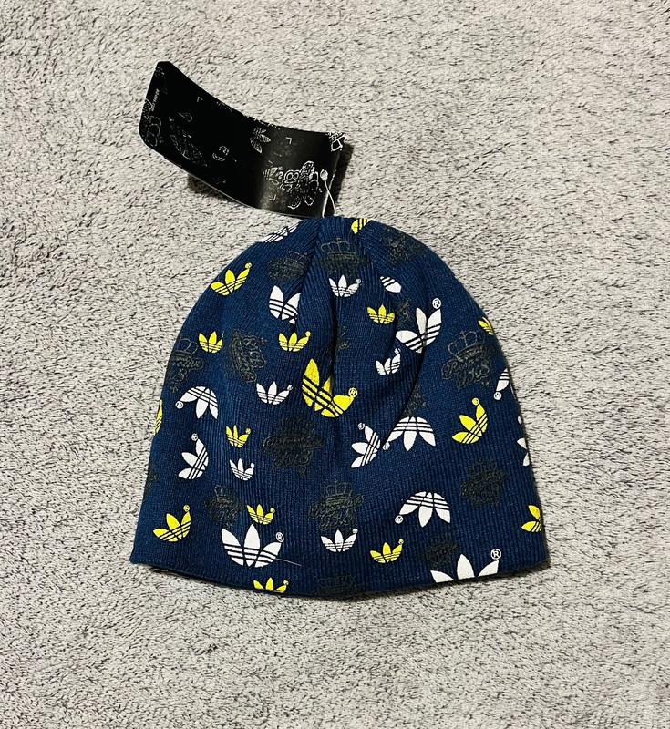 Шапка Adidas Трикотаж Колір Синій Напівобʼєм 23 см, на розтяг до 30 см. Висота 20 см, на розтяг до 24 см.