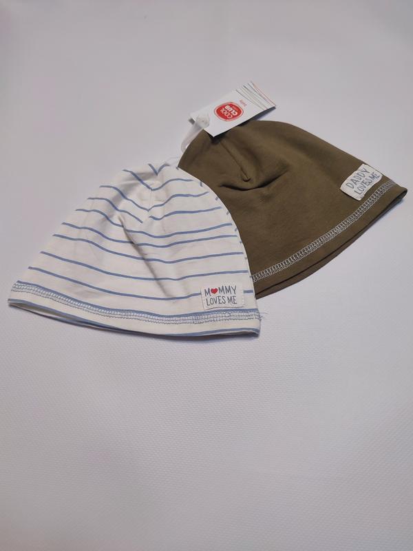 Новий набір шапочок для немовлят, розмір 48-50, якісна натуральна тканина, стильні написи.