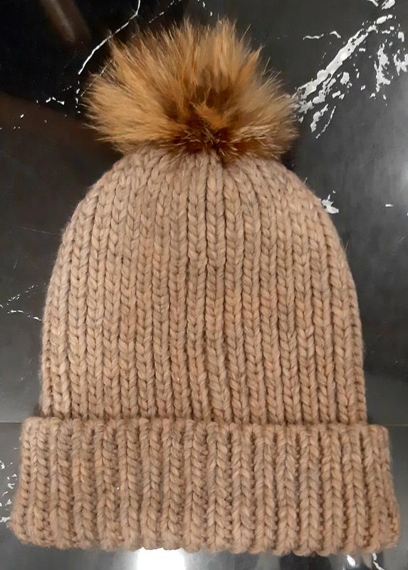 Шапка з відворотом та помпоном, колір кавовий, розмір універсальний