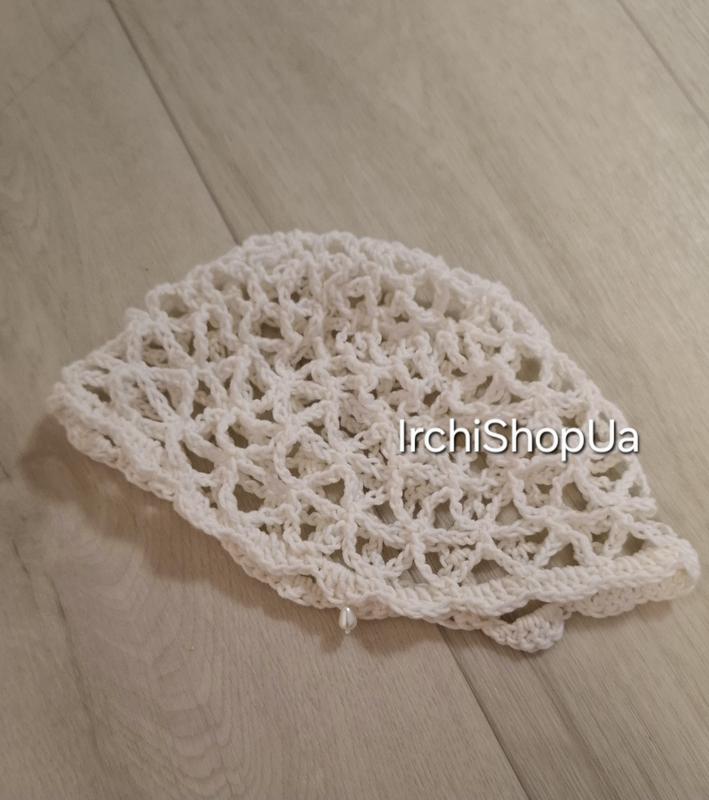 Как новая ручная работа, белого цвета, посередине с жемчужиной, при желании можно отрезать, на объем 56-58см