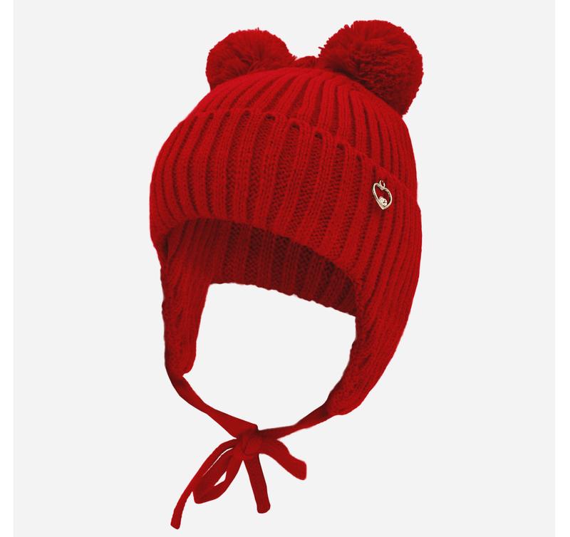 Дитяча зимова шапка на завʼязках з помпонами на флісі на 1-2 роки