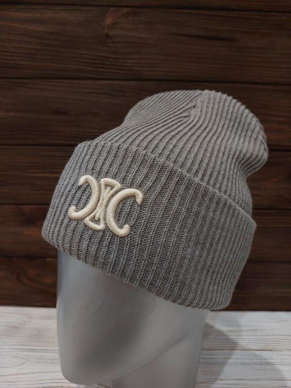 Женская шапка однотонная серая, шапка лопата с подворотом вискоза, шапка нейлон женская на...