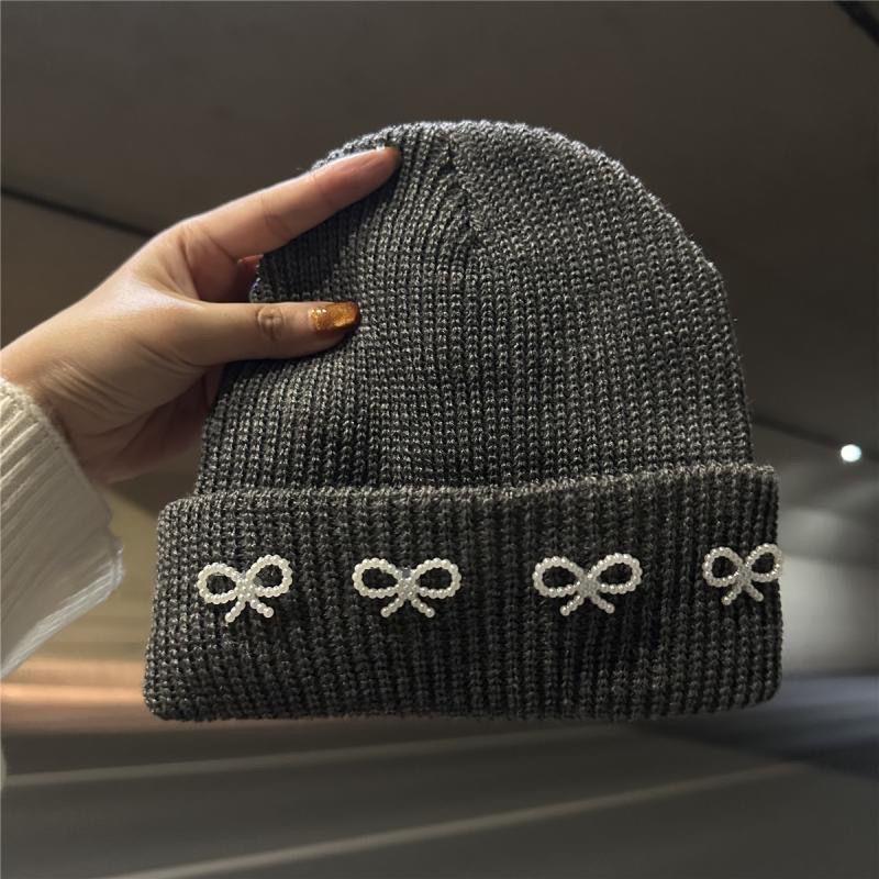 Шапка для дівчинки сіра з білими бантиками 2-8 років в рубчик єврозима осінь