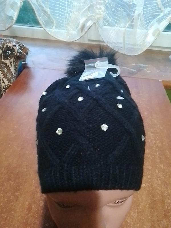 Шапка жіноча із бабоном , фірмова, гарна, стильна оздоблена камінчиками,зразу є запасні камінчики