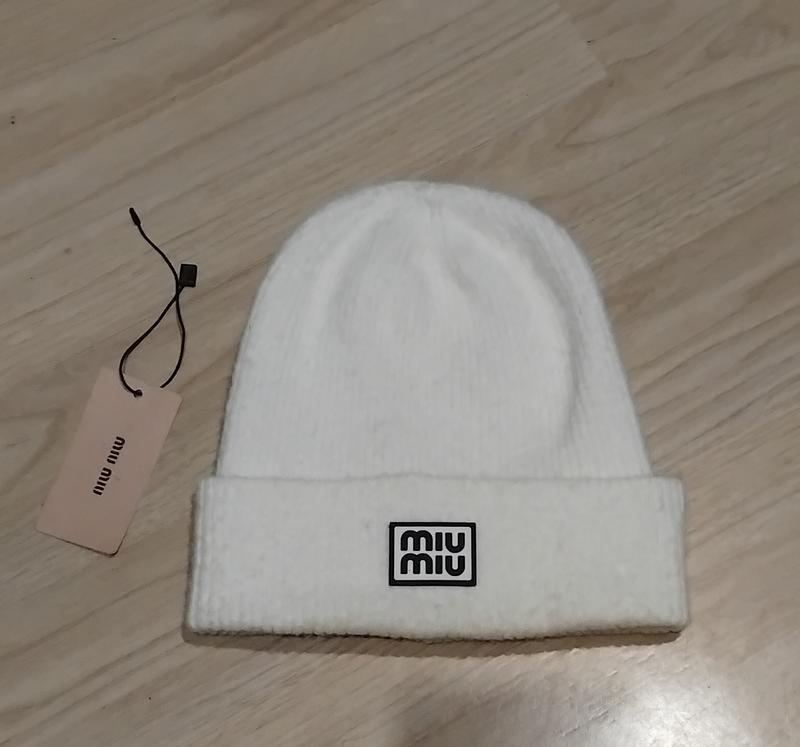 Продам свою белую,фирменную шапку с отворотом Miu Miu. В составе: 30%шерсть,70%акрил. Покупала за 1400 грн,одевалась 3 раза,состояние идеальное. Пр-во Турция Замеры на фото.