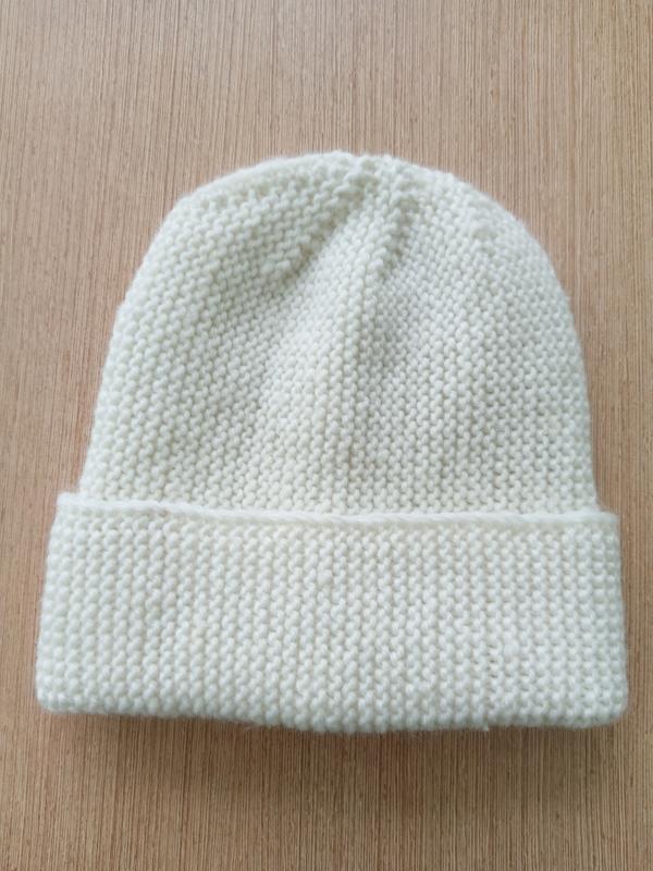 в'язана дитяча шапка ручної роботи кремового кольору, розмір на об'єм голови 32см., довжина виробу 22см. ще є розміри на фото