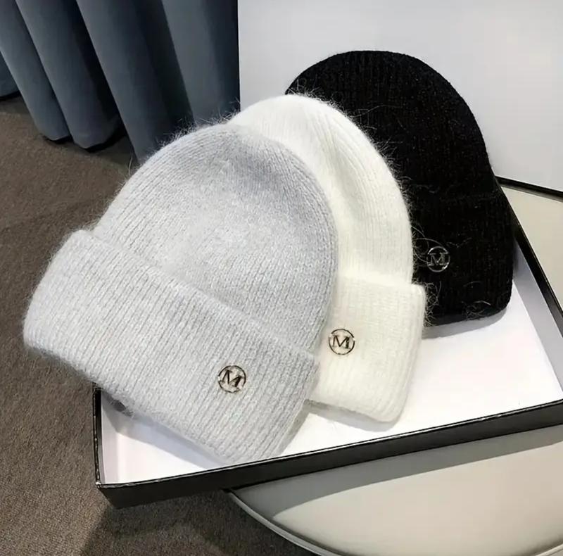 Жіноча в'язана шапка на осінь/зиму з оксамиту та вовни. Теплі, універсальні пуловери для холодної погоди. Колір: сірий, бєж. Код 5286.