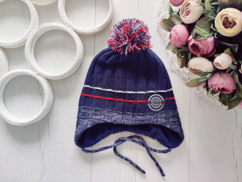 43-45, теплая зимняя шапка на флисе мальчику на завязках артикул: 25150