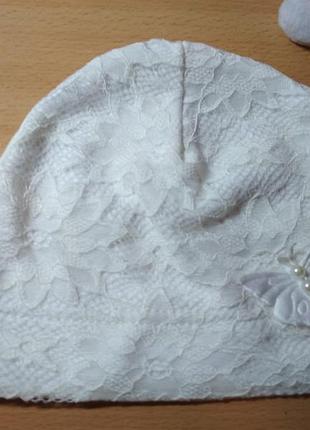 Ошатна шапочка для дівчинки 6 міс. Стан ідеальний, гарно тягнеться, якісний трикотаж. На весну буде гарно виглядати до курточки чи пальта.