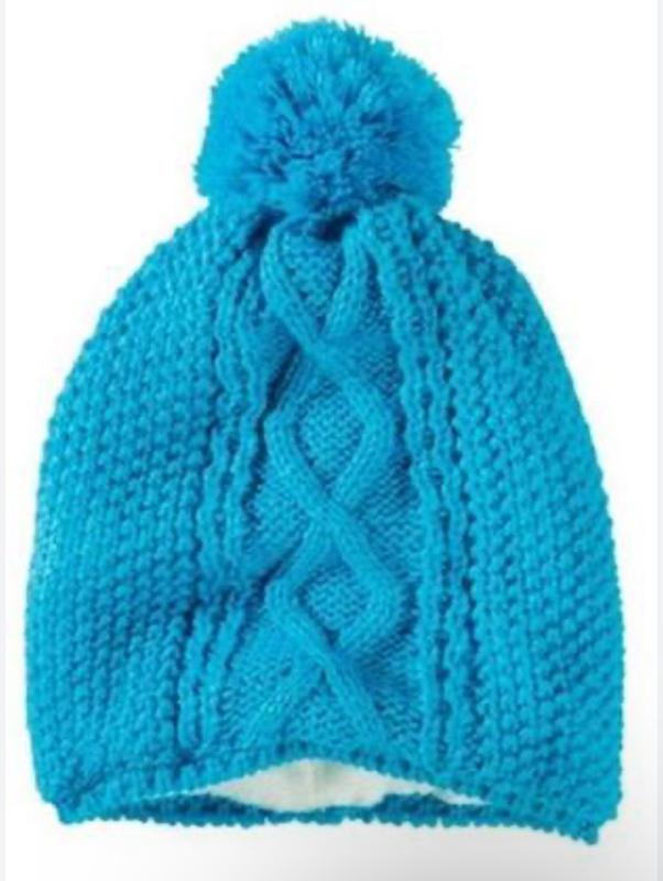 Стильна та тепла шапка синього кольору з пухнастим бубоном. Підійде для холодної пори року, комфортна та приємна до носіння. Розмір: One size (універсальний)