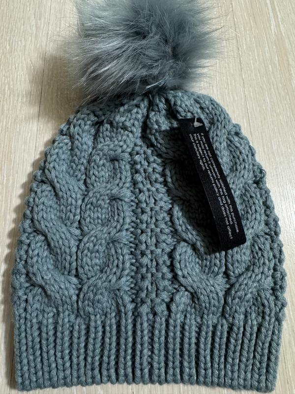 У наявності красива шапка фірми ALE-HOP. Склад: 100% акрил, нитка м'яка та добре тягнеться. Довжина без бубону — 22 см, з бубоном — 28 см, ширина — 19 см і ще дуже добре тягнеться.