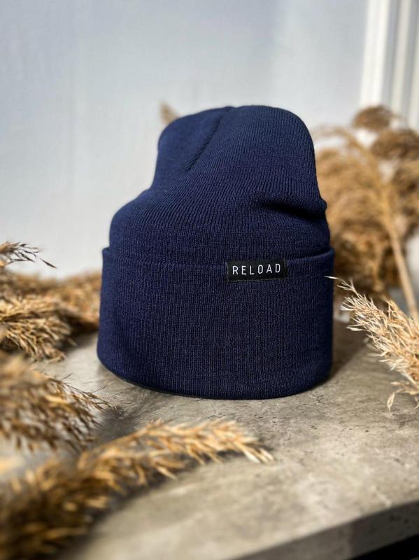 Шапка зимова reload з відворотом унісекс темно-синя з вовною (b)