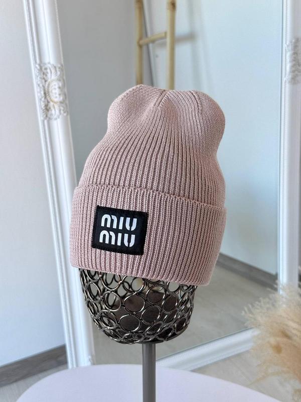 Шапка Miu Miu Стиль: Невисока лопатка Производитель: Турция В палитре - 6 цветов. Размер: 55-59 Сезон: Осень-Зима Состав: 50% хлопок, 50% акрил.