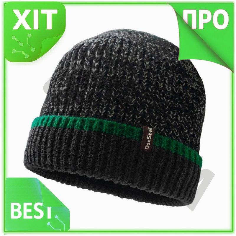 Ve шапка водонепроникна dexshell cuffed new version beanie чорна з зеленою смугою зимова д...