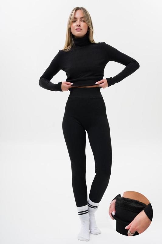 Жіночі теплі лосини в рубчик на хутрі without chery black l
