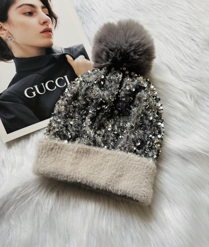 В наявності шапка дитяча, всередині мягенька, зверху блискуча паєтка, помпон відстібається на кнопці, стан ідеальний