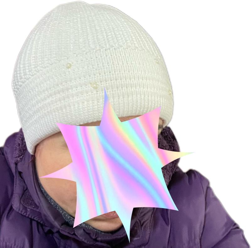 Біла двійна вʼязана шапка Розмір десь 54 Камінці пластик і, клеєні Передоплата або оплата через шафу