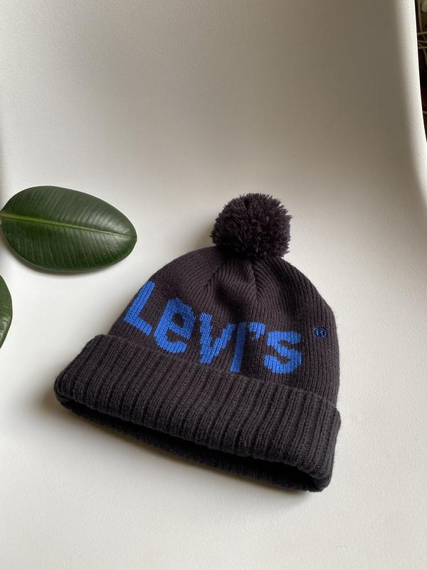Шапка-бини levi's темно-серого черного с логотипом и помпоном 56см.