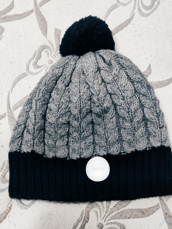 Тепла зимова шапка на хлопчика. На флісовій підкладці. Спереду логотип з світловідбиваючим ефектом. Колір сірий з темно-синім.