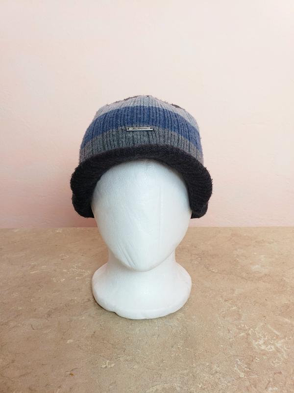 Чоловіча тепла в'язана шапка з козирком ben sherman акрил синьо-сіра смугаста