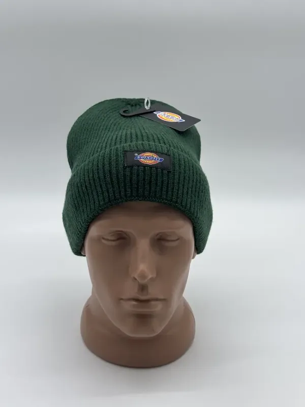 Унісекс зимова шапка-біні dickies зелена з акрилу з контрастним логотипом стильна тепла ша...