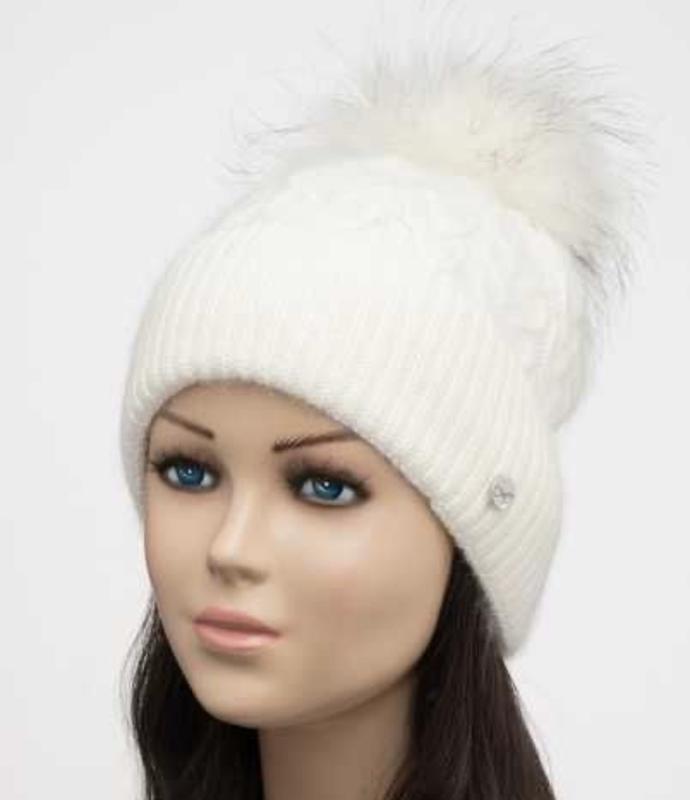 Жіноча ангорова зимова — стильний варіант для тих, хто любить ніжну текстуру ангори. Балабон відстігається Модель дуже тепла завдяки поєднанню ангора 50% + поліестер 50%, а також підкладці з мікрофлісу, яка добре утримує тепло, приємна до шкіри. Молочного кольору .