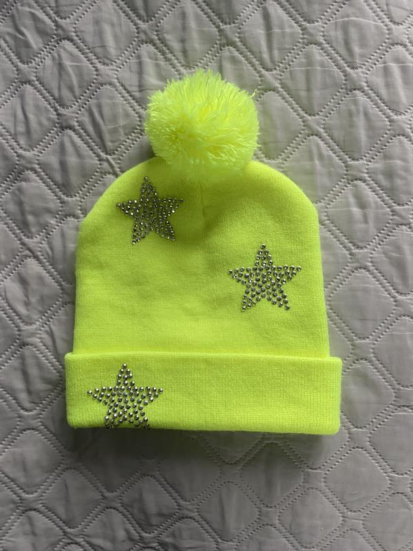 Продам женскую шапку бини ярко-желтого цвета с понпоном и декоративными стразами в форме звезд. Теплая с составом шерсть 70% акрил 30%, не колючая. Можно подворачивать как вы хотите. Без торга, если есть вопросы пишите