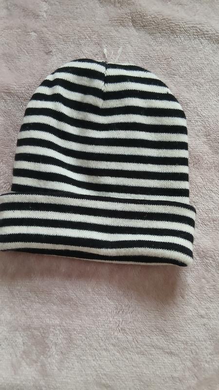 Шапка теплая вязаная в полоску двухсторонняя ширина 23 см, длина 23 см.