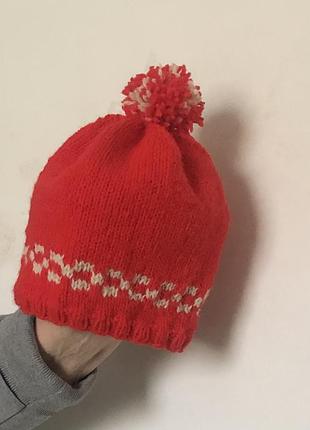 Шапочка для девочки связана из шерсти объем головы 42см высота 18см