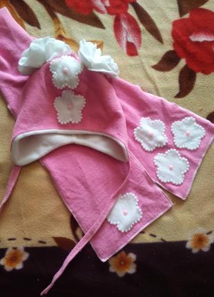 флісовий набір шапочка і шарфик, дуже красивий,на дівчинку 3-6 років,шапочка подвійна,на осінь,весну