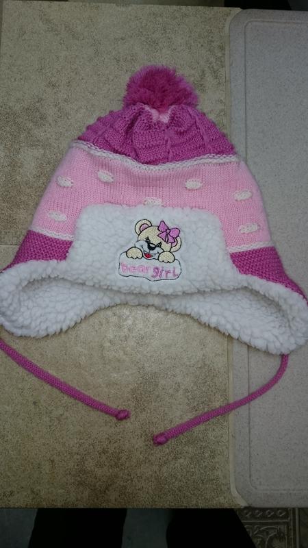 Шапка Anika тёплая для девочки. Цвет верха розовый с белая изнанка, с завязками и помпоном. Шапка мягкая и приятная на ощупь. Материал 50% шерсть, 50% акрил.Окружность головы 52см. Состояние очень хорошее.