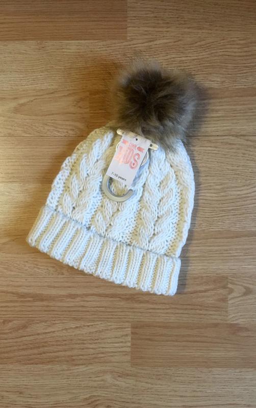 Вязаная шапка, шапочка для девочки Matalan, Англия, р. 7-10 л, 122-140 Цвет - кремовый как на фото, вязка крупная, смотрится очень красиво. Помпон из искусственного меха придает милую отделку. Замеры: высота -21 см ширина - 22 см подворот - 5 см