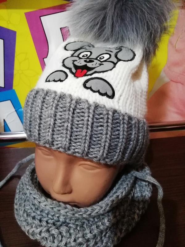Шапка в'язка з бубоном на флісі з хомутиком для хлопчика 48-50р