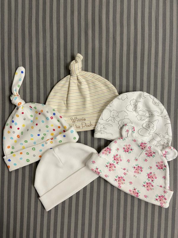 Шапочки для малятка, 💯 бавовна, в ідеальному стані, 5 шт - 60 грн, Disney, premark, 0-3 міс