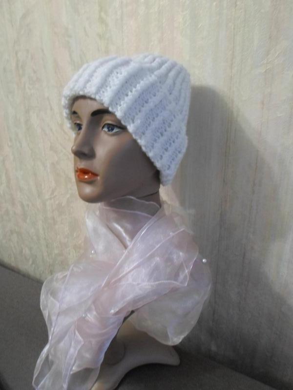 Біла в'язана шапочка 55-57р. Ручна робота. Без повернення .