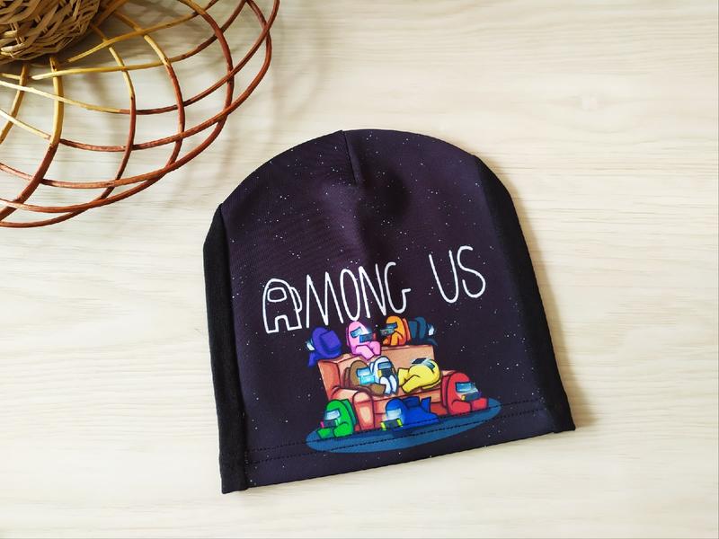 150 грн трикотажна шапочка Among Us тоненька одинарна вік 5-7 років на обєм 52-54см тягнеться гарно замір 21*21см