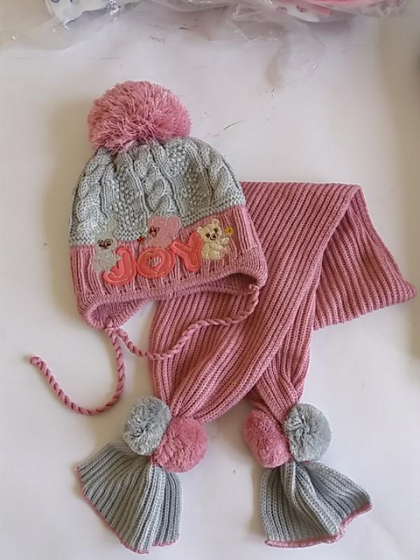 шапка з шарфиком для дівчинки шапка подвійна виміри - шапка 20×16 см шарф 15 ×103 см